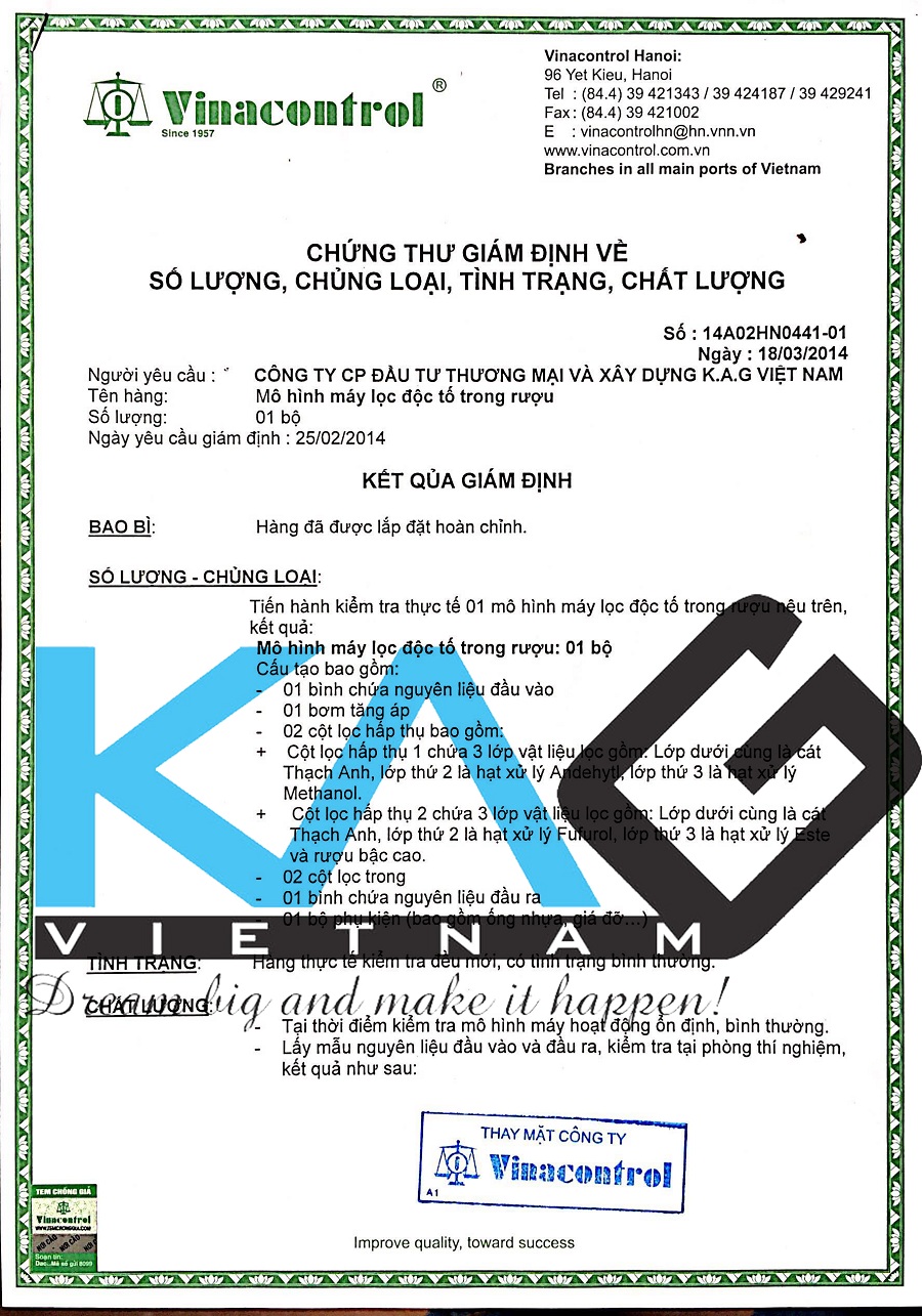 - + Máy lọc rượu đạt tiêu chuẩn về chất lượng, có chứng thư giám định của Vinacontrol về chất lượng máy