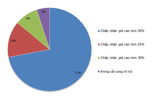 Số liệu thống kê khách hàng sãn sàng chi trả cho một sản phẩm rượu chất lượng tốt so với sản phẩm kém chất lượng với giá thành thấp hơn