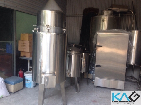 - Hệ thống nồi nấu chưng cất, thiết kế vỉ đỡ và sọt lưới phía trong.