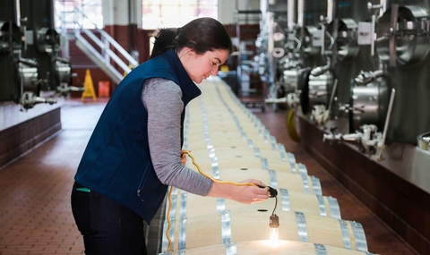 Đồng thời xem xét các đinh tán trên đai kim loại đã được đóng chặt chưa, được đóng thẳng hàng với nhau không. Tiếp đó, xem nút gỗ ở thân thùng sồi có khớp không, có thể bịt kín không, tránh oxy tiếp xúc với rượu ủ bên trong thùng.