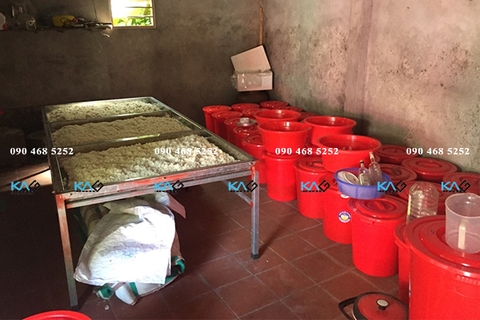 - Nấu cơm rượu: Sau khi chọn được gạo với số lượng vừa đủ, tiến hành vo và ngâm gạo từ 4-6 tiếng, sau đó cho vào nồi nấu cơm để nấu. Nếu nấu cơm với số lượng lớn thì nên sử dụng Tủ nấu cơm công nghiệp với thiết kế các khay nấu và tủ điện đi kèm, hoạt động dựa trên nguyên lý nước đun sôi, đảm bảo chất lượng cơm mềm, không khê cháy và chín đều.