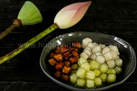Thạch củ năng sử dụng bột năng làm lớp phủ bên ngoài, tạo độ dẻo cho thạch và bên trong là củ năng cắt hạt lựu nhỏ. Thạch củ năng rất dễ dàng chế biến thành nhiều màu sắc khác nhau như syrup hoa đậu biếc, syrup hoa bụp giấm, syrup chanh dây…