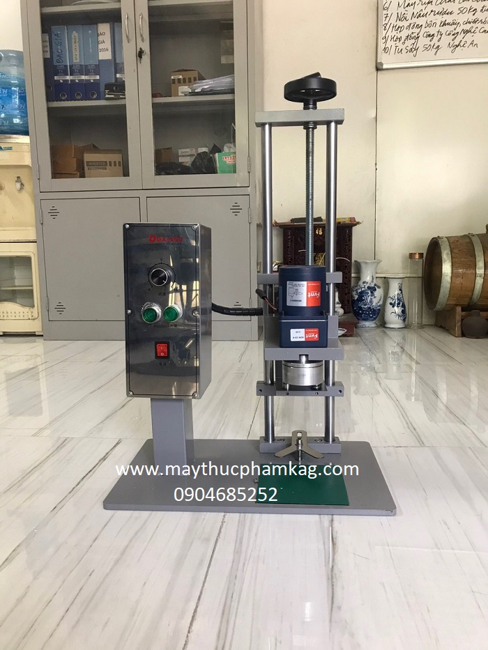 Máy đóng nắp chai được ứng dụng rộng rãi trong ngành công nghiệp sản xuất đồ uống, thực phẩm, hóa mỹ phẩm. Máy chuyên dùng để đóng nắp, siết chặt nắp chai nhựa, nắp nhôm chai thủy tinh, chai rượu volka hay chai nước tinh khiết. Thao tác sử dụng dễ dàng: hoạt động bán tự động, chỉ cần 1 người công nhân ngồi điều khiển máy, cầm chai đặt vào bộ giá đỡ của máy. Máy đóng nắp chai sẽ dẫn chai lên đầu vặn nút. Sau khi đóng nắp xong bộ giá đỡ hạ xuống, người công nhân nhấc chai ra đưa tiếp chai khác vào. Thao tác cứ được thực hiện tuần hoàn liên tục cho hết cả quá trình