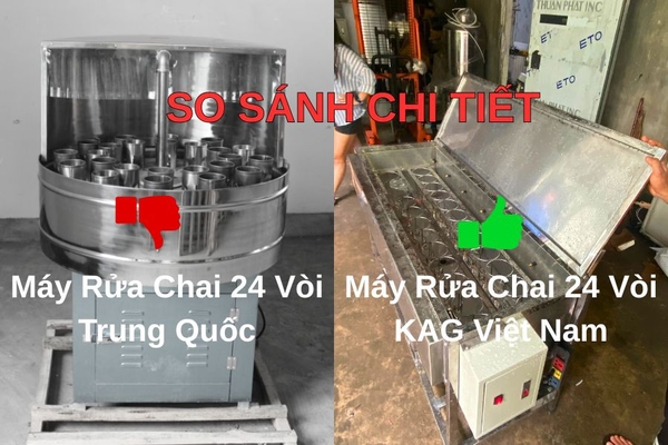 So sánh Máy Rửa Chai 24 Vòi KAG vs Máy Rửa Chai 24 Vòi Trung Quốc