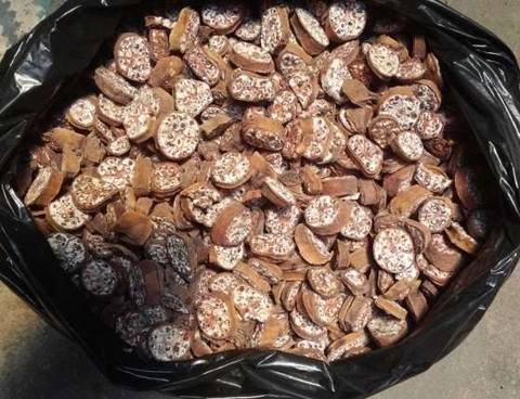 Chuối hột rừng đã được thái lát và sao khô trước khi ngâm rượu.