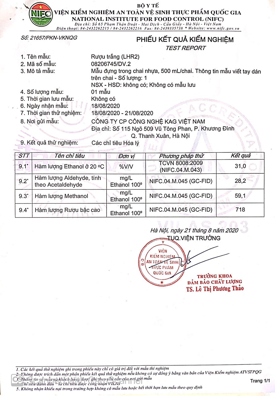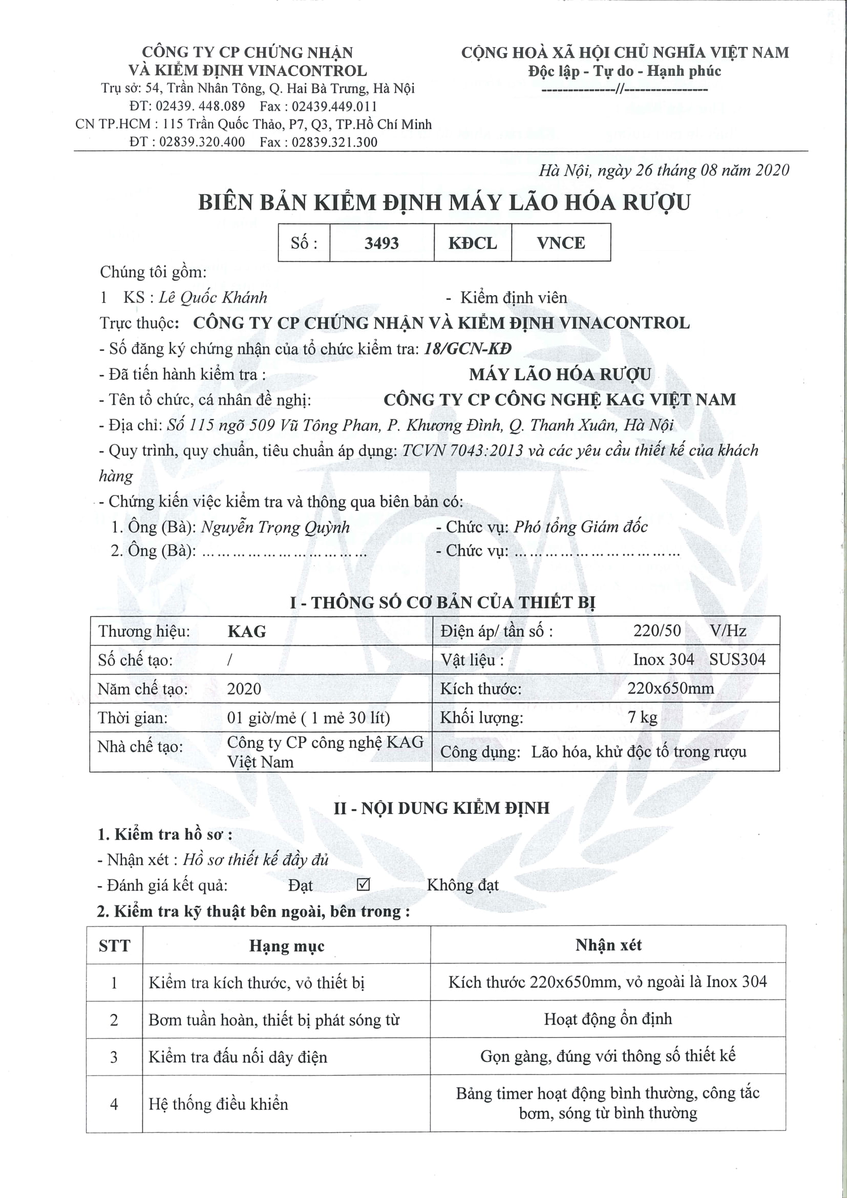 Giấy kiểm định VSATTP và Chất lượng của Máy lão hóa rượu cho kết quả tốt