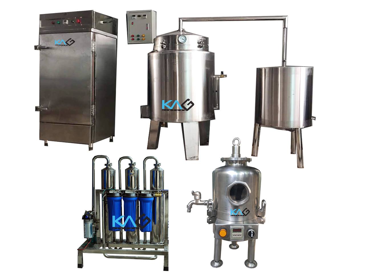 Bộ thiết bị nấu rượu được nhiều khách hàng quan tâm, cũng là những sản phẩm bán chạy nhất của KAG. Bộ thiết bị nấu rượu gồm có: Tủ nấu cơm, Nồi nấu rượu, Máy lọc rượu, Máy lão hóa rượu.