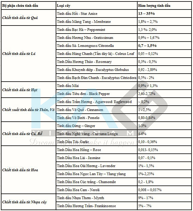 Tìm hiểu tỉ lệ tinh dầu trong nguyên liệu