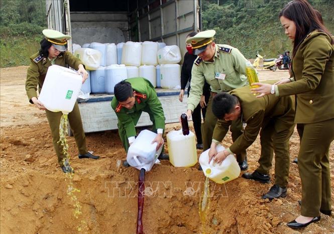 Tiêu hủy rượu giả tại lào cai - ảnh TTXVN