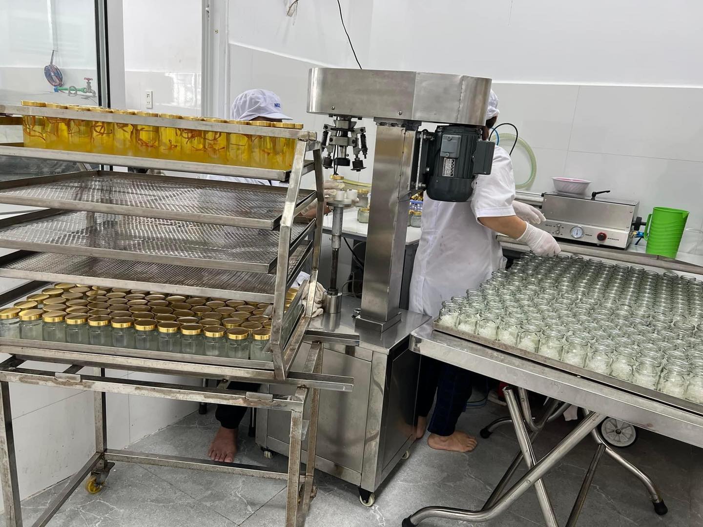 Hũ yến sau khi được đóng nắp sẽ được đưa đến Máy hấp thanh trùng bằng nhiệt ở áp suất cao để đảm bảo an toàn cho người sử dụng, đáp ứng yêu cầu an toàn vệ sinh thực phẩm.