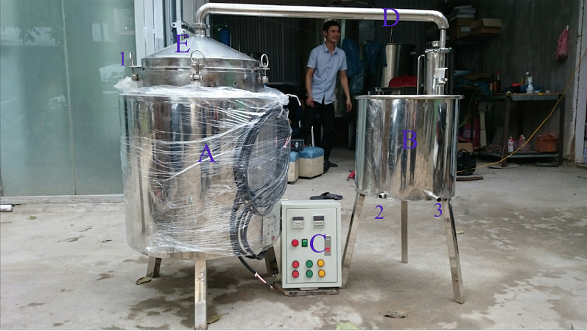 A: Nồi nấu rượu, có hệ thống điện và bảo ôn.