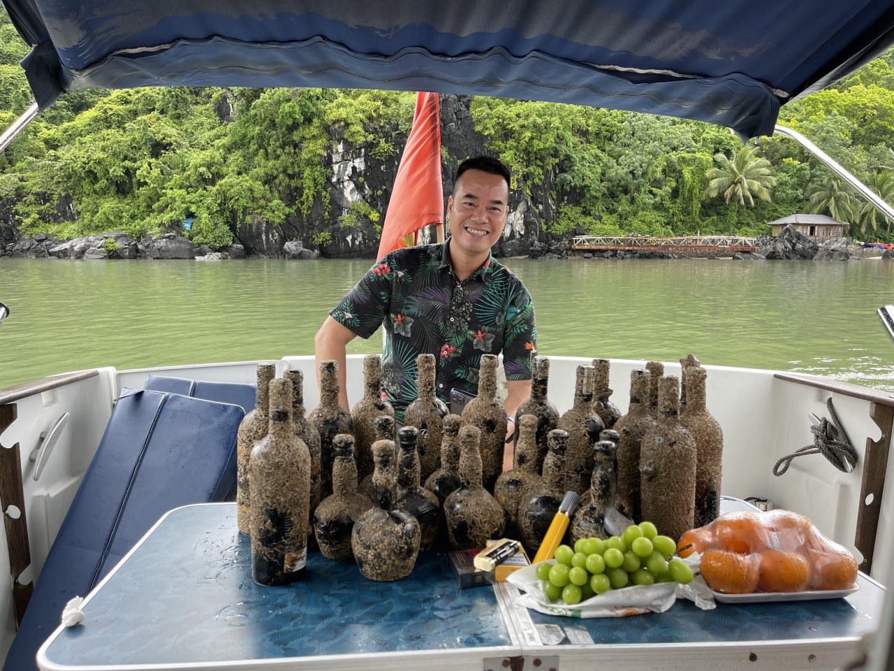 Trong vòng hơn 2 năm qua, anh đã có 4 đợt đưa rượu xuống đáy vịnh Hạ Long. Trong đó, ở đợt thứ 4, có tổng cộng khoảng 500 chai, gồm cả rượu vang nhập khẩu và những chai rượu tự sản xuất. Với loại rượu tự nấu (chủ yếu là sâm ngọc linh và nho rừng), anh đặt mua các bình rượu gốm và cho tráng men dầy bên trong để nước không thẩm thấu vào trong.