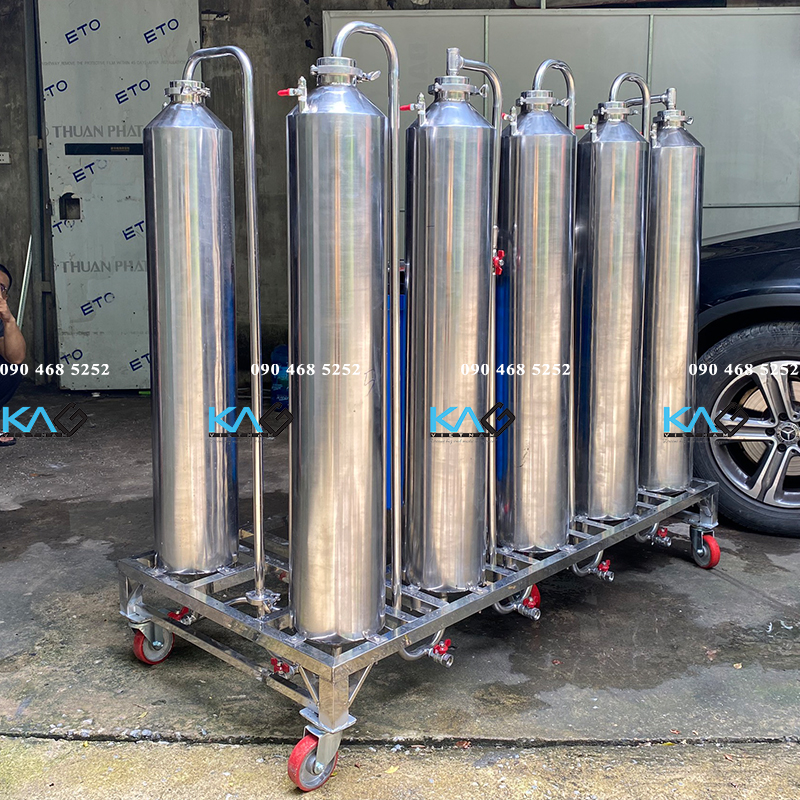 Với thiết kế riêng biệt, 6 cột lọc trên 1 thiết bị nên kích thước to hơn sản phẩm thông thường nhưng thực tế tiết kiệm được phần khung sườn chung do đó giá thành sẽ giảm đi rất nhiều thay vì đầu tư 2 máy lọc rượu cùng công suất.