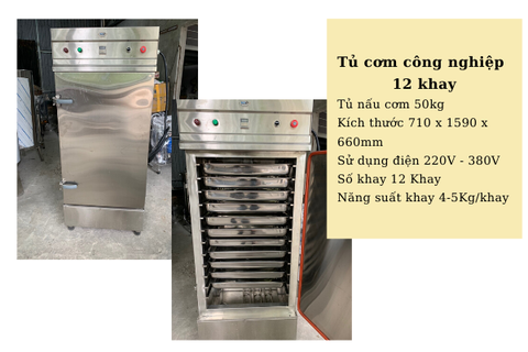 - Tên sản phẩm Tủ nấu cơm công nghiệp 12 khay - Tủ nấu cơm 50kg