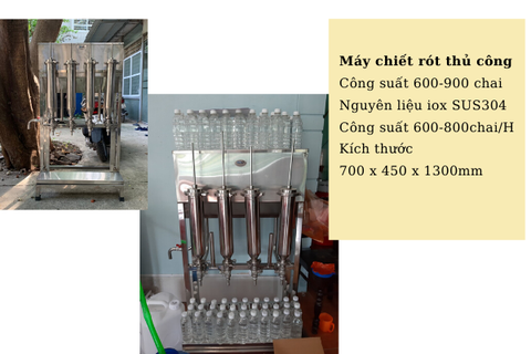 Năng suất cao, tiết kiệm thời gian làm việc và không tốn điện là 3 ưu điểm chính của Máy chiết rót thủ công. Với 4 vòi chiết được định lượng chính xác đến 90%, sử dụng 2 cần gạt để chiết rượu từ bình chứa vào chai theo định mức cài sẵn, Máy rót rượu chỉ cần 1 – 2 nhân công để hoàn thành quá trình chiết rót 4 chai/ lần với tốc độ từ 600-800chai/h.