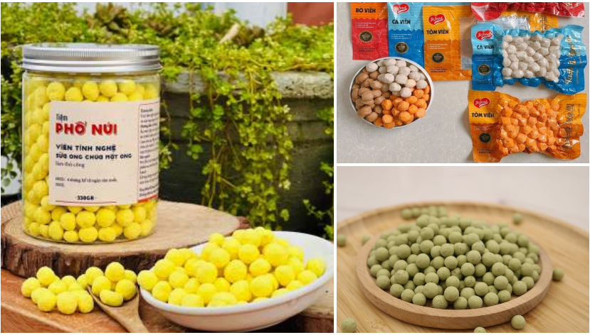Sản xuất trân châu, viên tinh bột sắn, viên mật ong nghệ, viên bột nghệ, chả cá, bánh nhãn và kẹo viên tròn.