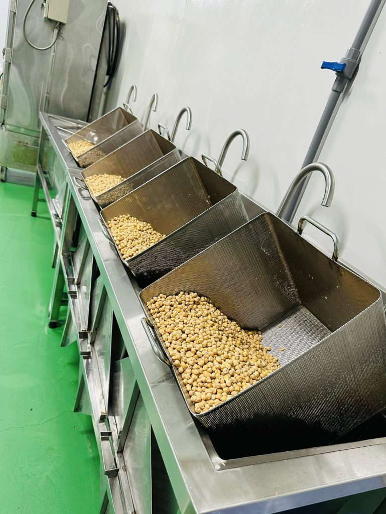 Tùy thuộc vào từng loại hạt, quy trình sơ chế có thể khác nhau. Các loại đậu và gạo lứt sẽ rửa sạch để loại bỏ bụi bẩn và tạp chất. Tiếp đó, hạt sẽ được ngâm trong nhiều giờ cho mềm, rút ngắn thời gian làm chín và tăng hiệu quả của các bước chế biến sau. Với các loại hạt cứng như macca, hạt điều, óc chó sẽ được bóc vỏ để lấy phần nhân bên trong, sẵn sàng cho công đoạn làm chín tiếp theo. Quá trình sơ chế đúng cách đảm bảo nguyên liệu sạch, đồng đều, là nền tảng cho một mẻ bột ngũ cốc chất lượng cao.