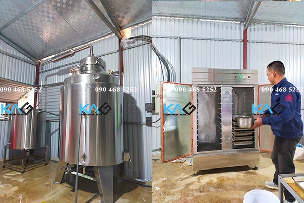 Bộ nồi nấu rượu 200kg được lắp đặt tại huyện Mường Tè tỉnh Lai Châu, cho cơ sở sản xuất rượu sâm, rượu dược liệu. Tại đây, mỗi ngày sản xuất 200-500 lit rượu đáp ứng nhu cầu tiêu thụ rượu. Hệ thống sản xuất rượu 200kg bao gồm Tủ nấu...