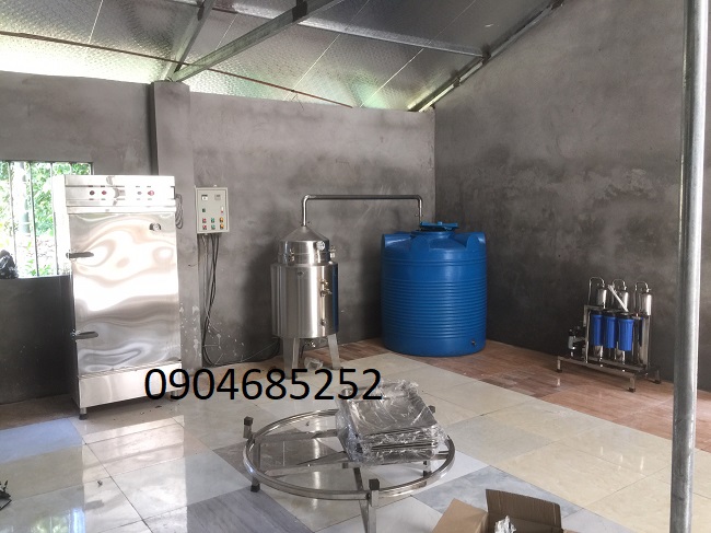 Một số hình ảnh hệ thống chưng cất rượu, bao gồm: Máy lọc rượu, Tủ nấu cơm, Nồi nấu rượu.