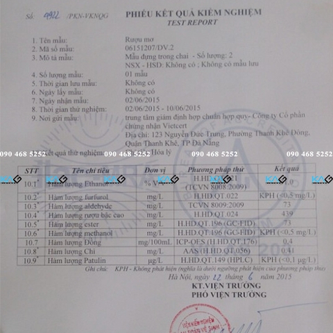 Khi sử dụng máy lọc độc tố rượu hàng giả, hàng nhái, hàng kém chất lượng sẽ có nguy cơ làm hỏng rượu, thay đổi mùi vị rượu, thậm chí gây độc cho rượu, ảnh hưởng đến uy tín của cơ sở sản xuất rượu, doanh nghiệp kinh doanh rượu. Nên dùng máy lọc rượu chính hãng, có uy tín, kinh nghiệm sản xuất lâu năm, và được chứng nhận bởi đơn vị kiểm định chất lượng. Máy lọc rượu của Công ty KAG Việt Nam không chỉ được chứng nhận bởi đơn vị kiểm định Vinacontrol mà còn đạt chất lượng khi được thử nghiệm bởi khách hàng, dưới đây là một số phiếu kết quả kiểm nghiệm chất lượng rượu sau khi dùng Máy Lọc Rượu KAG tất cả các mẫu rượu đều đạt yêu cầu TCVN về rượu trắng.