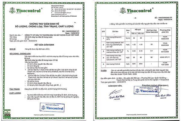 - Các vật liệu cao cấp, nhập khẩu Châu Âu đảm bảo an toàn cho sức khỏe người sử dụng giúp loại bỏ hoàn toàn các độc tố trong rượu như Andehit, Methanol, Furfurol, Etanol, được kiểm chứng bởi Viện Quản lý Chất lượng Rượu, Bia và Nước giải khát (VINACONTROL).