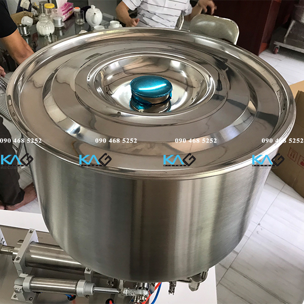 Máy có cấu tạo 3 bộ phận chính là Phễu chứa dung dịch, Pittong khí nén, Vòi chiết rót
