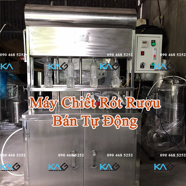 Bên cạnh máy thủ công, cơ sở quy mô lớn có thể dùng máy chiết rót định lượng bán tự động, thiết bị chiết rót này chỉ cần 1 – 2 nhân công để hoàn thành quy trình chiết rót dung dịch, vận tốc gấp đôi máy chiết rót rượu bằng tay thủ công, từ 1200 – 1600 chai/h.