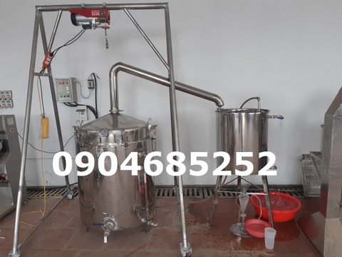 - Phần nồi nấu chưng cất là cấu tạo bằng inox 304 với 3 lớp: bảo ôn chống nóng và mất nhiệt, lớp chứa dầu truyền nhiệt và phía trong là hệ thống sọt chứa nguyên liệu cần chưng cất. Nắp nồi sẽ được thiết kế theo dạng hình chóp cao. Chân nồi cao và đáy xả dưới đáy nồi là nơi xả thoát các nguyên liệu.