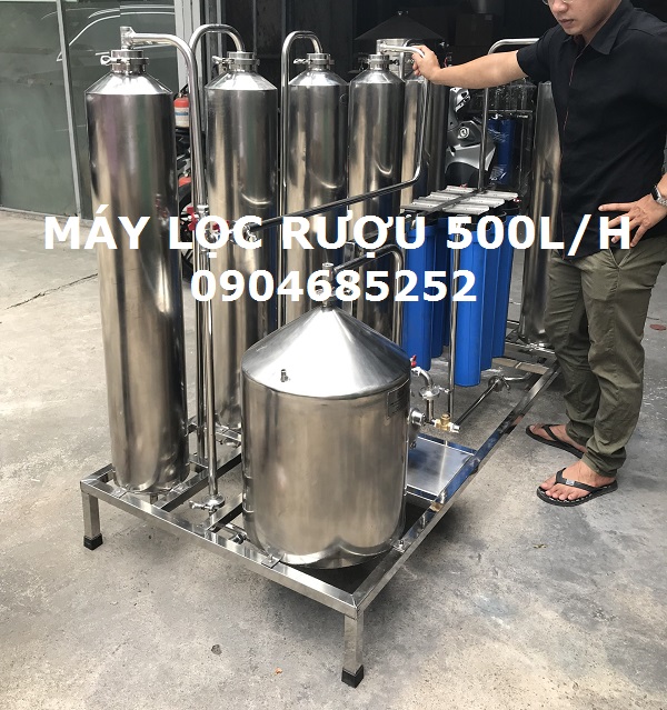 - Rượu đã nấu được đưa vào bình chứa và được bơm rượu đầu Inox bơm vào hệ thống lọc đa tầng. Hệ thống này có tác dụng tách các thành phần của rượu ra, sau đó rượu được chuyển đến các cột lọc hấp thụ, tại đây các vật liệu lọc rượu hấp thụ được tạo ra một độ xốp và độ hoạt hóa cao, sẽ dần dần hấp thụ từng phần của các hợp chất hữu cơ no đơn chức có trong rượu, tách chúng ra, thu vào trong các khoang rỗng và giữ chúng lại. Quá trình này xảy ra liên tục cho đến khi rượu đi qua hết lớp vật liệu của hệ thống.