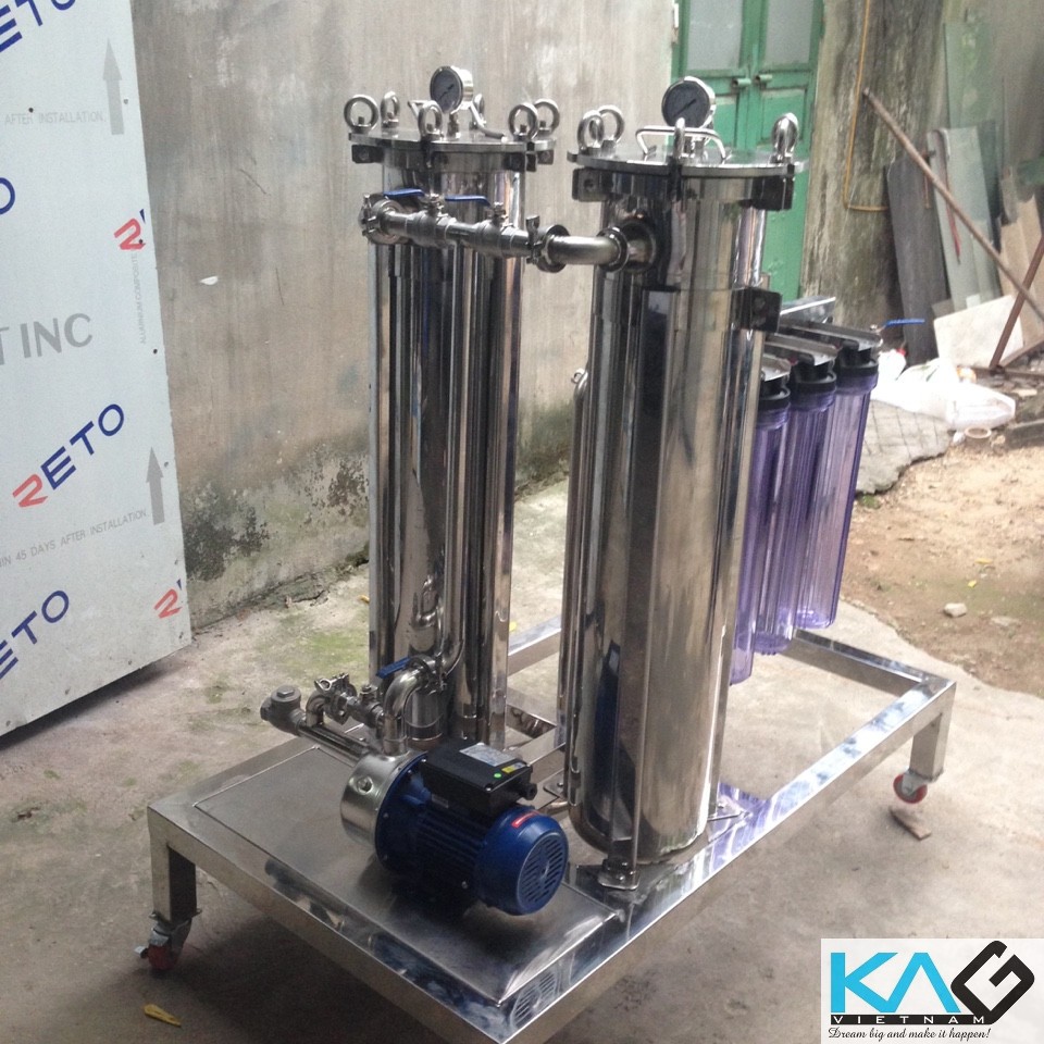 Thiết kế 2 cột khử inox cao và 6 cột lọc bông