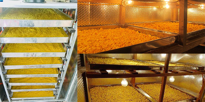 Chính vì vậy, hiện nay các xưởng sản xuất, cơ sở kinh doanh nghệ tươi đều dùng các loại máy sấy nghệ để nâng cao năng suất và chất lượng sản phẩm, bảo vệ tối đa hàm lượng hoạt chất chính curcumin trong tinh bột nghệ.