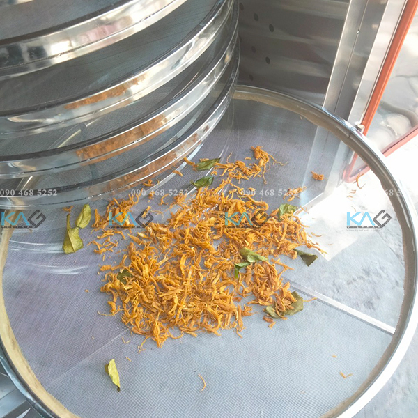 Nhằm khắc phục tình trạng sản phẩm sấy không đều trong một khay KAG Việt Nam giới thiệu tới bạn giải pháp sấy trên mâm xoay cho sản phẩm sấy chất lượng đồng đều, khô ròn, khô nhanh và tiết kiệm điện. Máy sấy khay tròn làm bằng INOX 304 không rỉ sét cùng mặt khay là lưới inox cao cấp, đảm bảo an toàn thực phẩm.