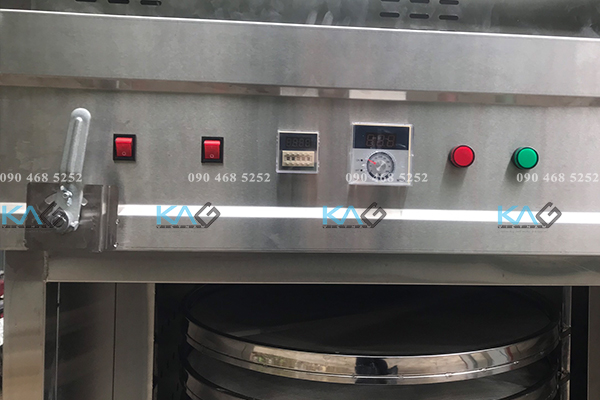 Tủ sấy khay tròn vận hành tự động thông qua bảng điều khiển mặt trước máy bao gồm: Đồng hồ nhiệt, Đồng hồ hẹn thời gian, và Cần điều chỉnh lưu lượng gió.