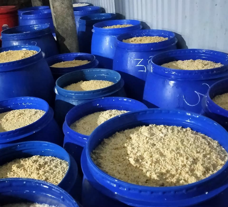 Cơm rượu: Rượu được làm bởi gạo sạch, trồng trên vùng đất màu mỡ phù sa từ sông Mekong mang lại hương thơm đặc biệt, đậm đà hơn các loại rượu khác. Sau khi chọn được gạo với số lượng vừa đủ, vo và ngâm gạo từ 4-6 tiếng, sau đó cho vào tủ nấu cơm công nghiệp với thiết kế các khay nấu và tủ điện đi kèm, hoạt động dựa trên nguyên lý nước đun sôi, đảm bảo chất lượng cơm mềm, không khê cháy và chín đều.