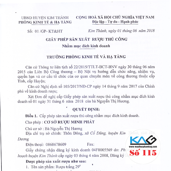 - - Giấy phép sản xuất rượu thủ công nhằm mục đích kinh doanh. Trình tự thực hiện, hồ sơ thủ tục xem Tại đây.