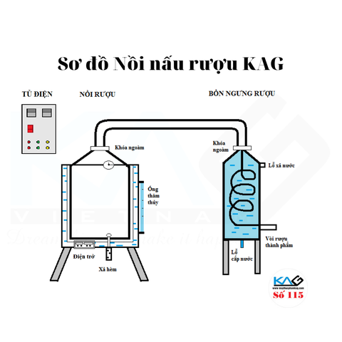 Sản phẩm nồi nấu rượu dạng tháp chưng cất là sản phẩm MỚI NHẤT của công ty K.A.G Việt Nam, với thiết kế cải tiến giảm bớt diện tích, sản phẩm phù hợp với những cơ sở có diện tích khiêm tốn.