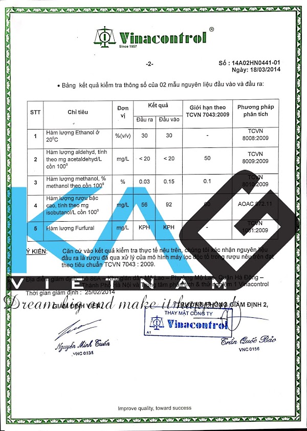 Kết quả kiểm nghiệm mẫu rượu được lọc qua máy lọc rượu KAG