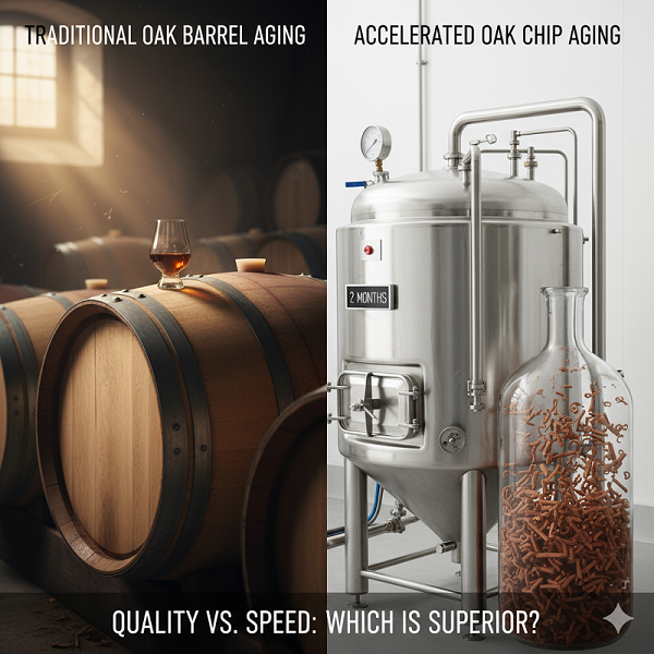 Vụn gỗ sồi có thể giúp bạn tiết kiệm chi phí và đạt được hương vị gỗ sồi nhanh chóng. Nhưng nó không thể thay thế quá trình lão hóa toàn diện và sự tích hợp hương vị phức tạp mà chỉ thùng gỗ sồi nguyên khối, với khả năng kiểm soát oxy tự nhiên, mới mang lại được.