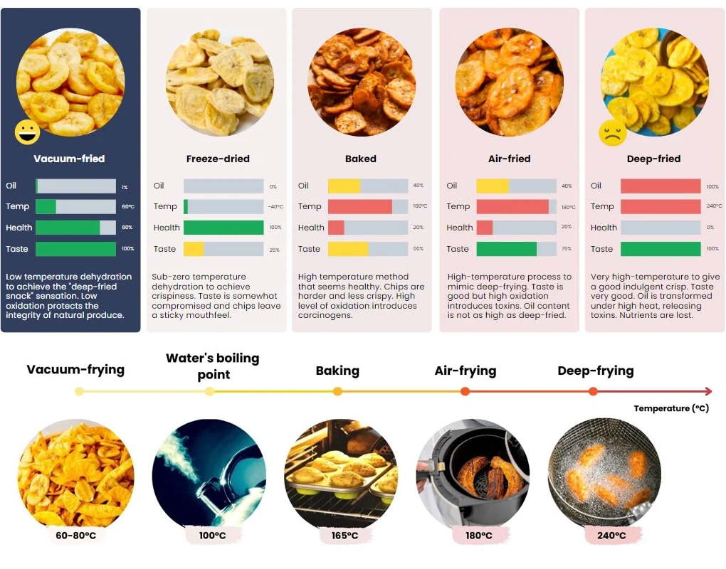 So sánh Công nghệ chiên chân không và Chiên thông thường