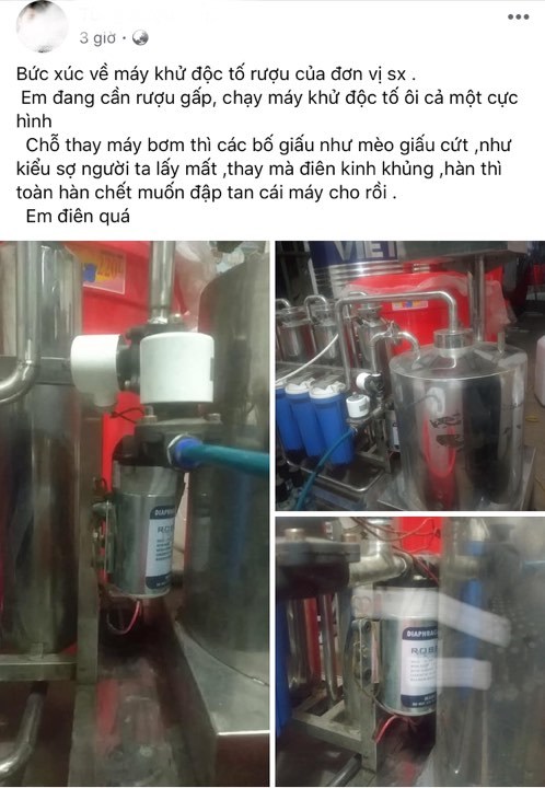 Đánh giá không tốt từ khách hàng về máy lọc rượu của một đơn vị sản xuất