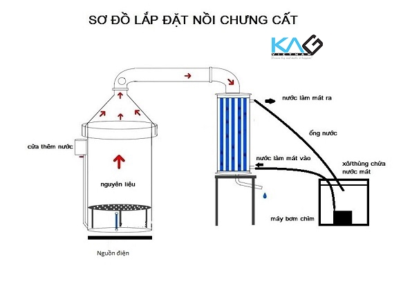 Trước khi sản xuất cần kiểm tra thật cẩn thận thiết bị chưng cất, chú ý xem nắp, vòi voi có kín không, phần ngưng tụ có bị tắc, rò rỉ không, sau đó tiến hành làm vệ sinh thiết bị.