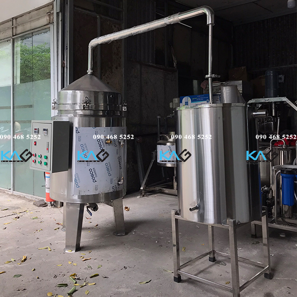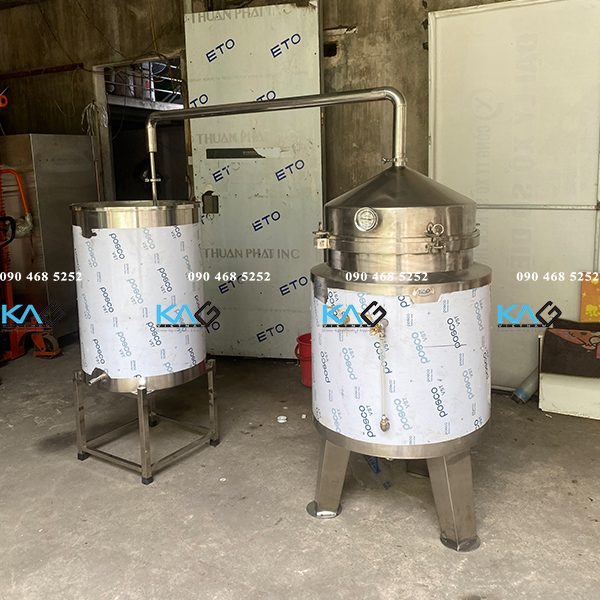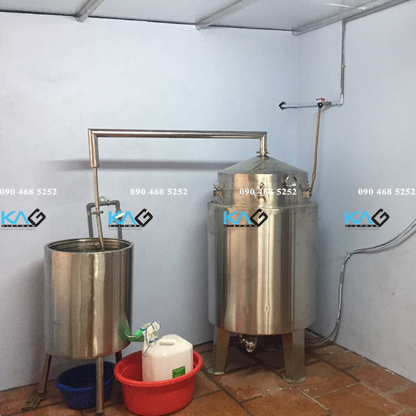 Nồi Nấu Rượu, Nồi Chưng Cất Rượu 50kg/mẻ (dung tích nồi 250 lit) của KAG ra đời nhằm thay thế phương pháp nấu rượu thủ công tốn kém đồng thời đưa công nghệ mới sản xuất rượu an toàn đảm bảo tiêu chuẩn, áp dụng cho các xưởng nấu rượu trung bình mỗi ngày bán ra 50-200 lit rượu.