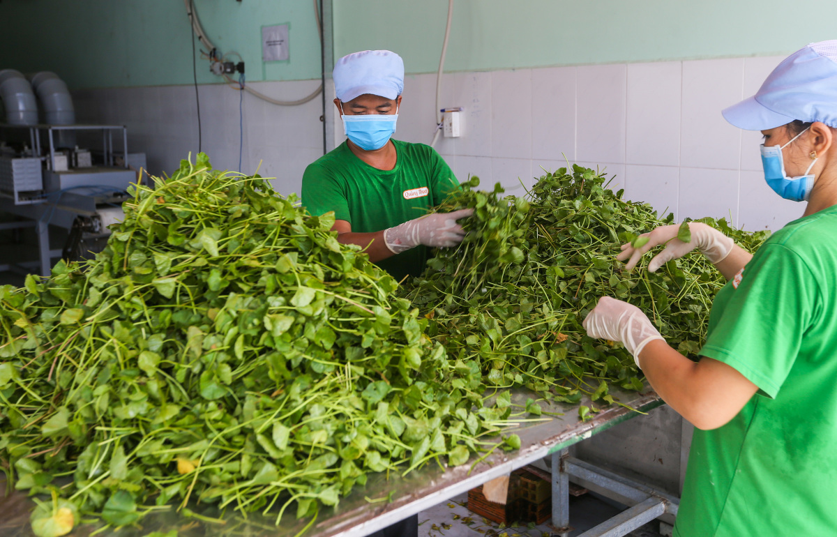 Rau sau khi thu hoạch được rửa sạch rồi qua công đoạn sấy lạnh tiệt trùng. Tùy loại rau mà thời gian sấy khác nhau, trước khi được nghiền thành bột và đóng gói, tất cả được làm theo quy trình khép kín đảm bảo vệ sinh.