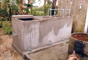 Lọc rượu bằng cát và than là một cách lọc rượu thủ công truyền thống. Bể lọc được xây lên và bỏ cát, than đá, sỏi… bên dưới để lọc rượu. Với cách lọc rượu này, sau khi rượu đã chưng được chảy qua bể lọc, ra rượu thành thẩm qua đường ống và chảy vào can rượu.
