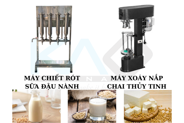 Nước đậu nành hay còn gọi là sữa đậu nành là một trong những sản phẩm khác trong quá trình sản xuất đậu phụ, đậu hũ, đây cũng là thức uống tốt cho sức khỏe. Sữa đậu nành được đổ vào bồn chứa liệu và chiết rót ra các chai, hũ. Máy chiết rót sữa đậu nành được làm từ inox 304, không bị biến dạng do nhiệt độ cao của sữa đậu nành, đảm bảo vệ sinh thực phẩm.