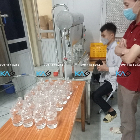 Chai, lọ được đưa vào hệ thống đóng chai bán tự động 3 trong 1 (Rửa chai – Chiết rót – Đóng nắp). Chai lọ được làm sạch trong Máy rửa chai 12 vòi, rồi để ráo nước. Tiếp đó đưa tới Máy chiết rót 4 vòi, dung dịch nước súc miệng được chiết vào chai theo định lượng đã cài đặt sẵn. Cuối cùng, chai được đưa tới Máy đóng siết nắp chai.