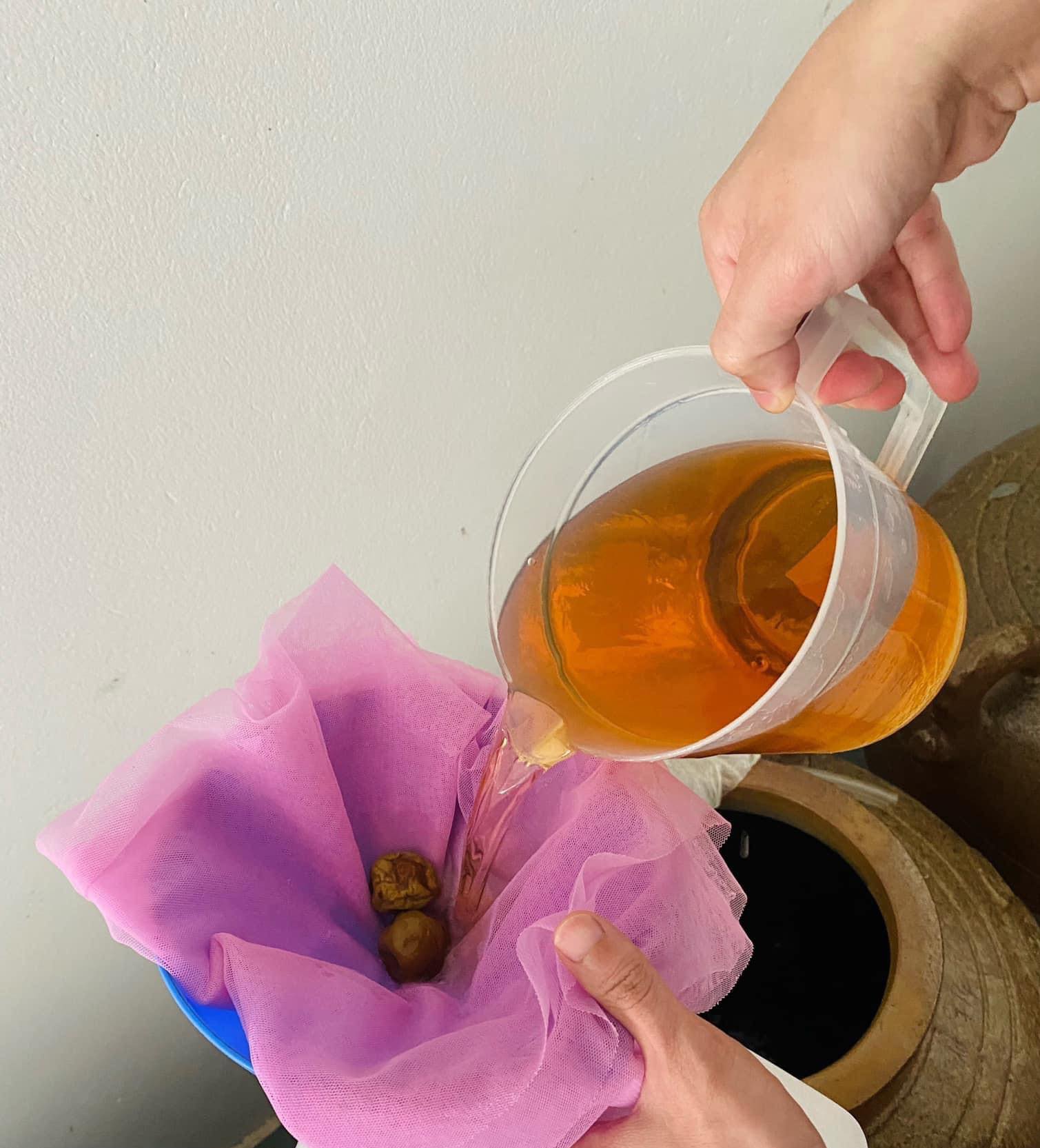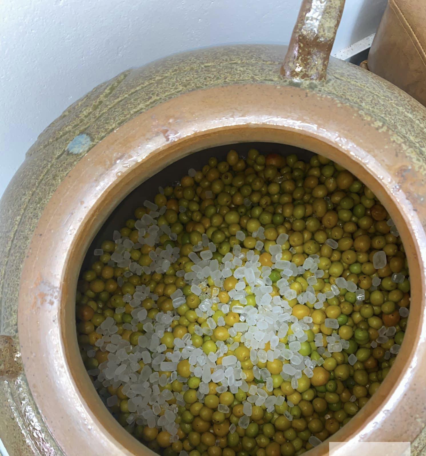 - Ngâm số lượng đường phèn với mơ theo đúng tỉ lệ 1:1