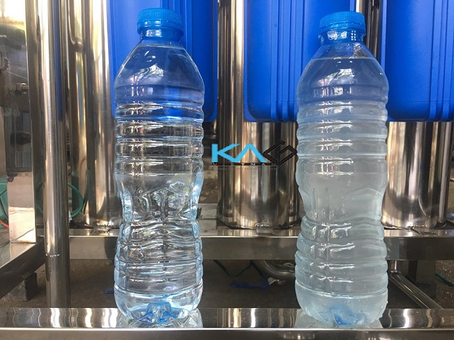 Rượu trước và sau khi lọc qua máy lọc rượu KAG, độ trong của rượu trước và sau khi lọc đã có sự khác biệt rõ rệt.