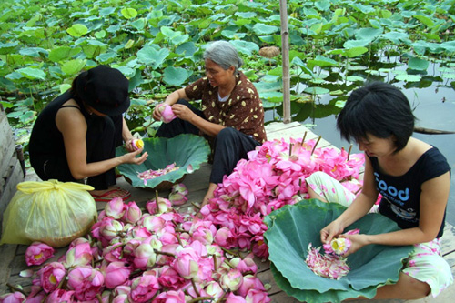 Tinh dầu hoa sen được chiết xuất từ hoa sen bằng phương pháp chưng cất hơi nước. Phương pháp này cùng một lúc có thể phục vụ được cho nhiều thiết bị chưng cất, điều kiện làm việc của công nhân nhẹ nhàng hơn, dễ cơ khí hóa và tự động hóa các công đoạn sản xuất, khống chế tốt hơn các thông số công nghệ, rút ngắn được thời gian sản xuất. Ngoài ra, phương pháp này đã khắc phục được tình trạng nguyên liệu bị khê, khét và nếu theo yêu cầu của công nghệ thì có thể dùng hơi quá nhiệt, hơi có áp suất cao để chưng cất.