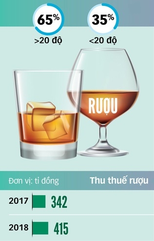 Thuế suất của rượu là 65% cho rượu trên 20 độ và 35% cho rượu dưới 20 độ